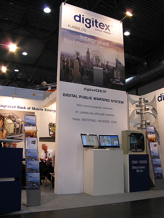 One of the largest trade fairs for safety and fire protection was held in Germany on the 7-12 of June 2010. At a specially prepared stand we presented our newest products, including the digitexWAVE public warning system using IP technology, DSE electronic sirens and the DTS-3000 vehicle terminals which integrates with the car’s location and navigation. Outside the hall we displayed our modern, mobile siren which is mounted on the of a car.